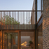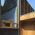 Externally, the wings are clad with different materials. The two west wings are clad in a mixture of split flint and render. The east elevation is clad in vertical oak that runs from the ground floor, along the terrace and first floor walls.