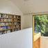 On plan, the house is divided into four wings – two to the west and two in the east. All four areas are linked by a circulation route and library space, connected by a large glazed element next to the entrance.
