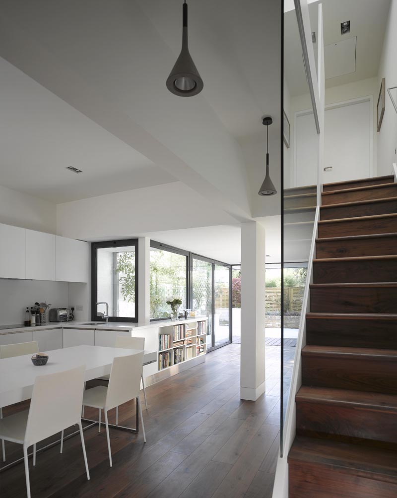 Internally the stairs are a new focal point, weaving up through the main spaces. A large new rooflight gives great natural light and ventilation above this stairwell. The top floor is a fantastic master suite with a smaller guest suite - perfect for a couple who's children have flown the nest.