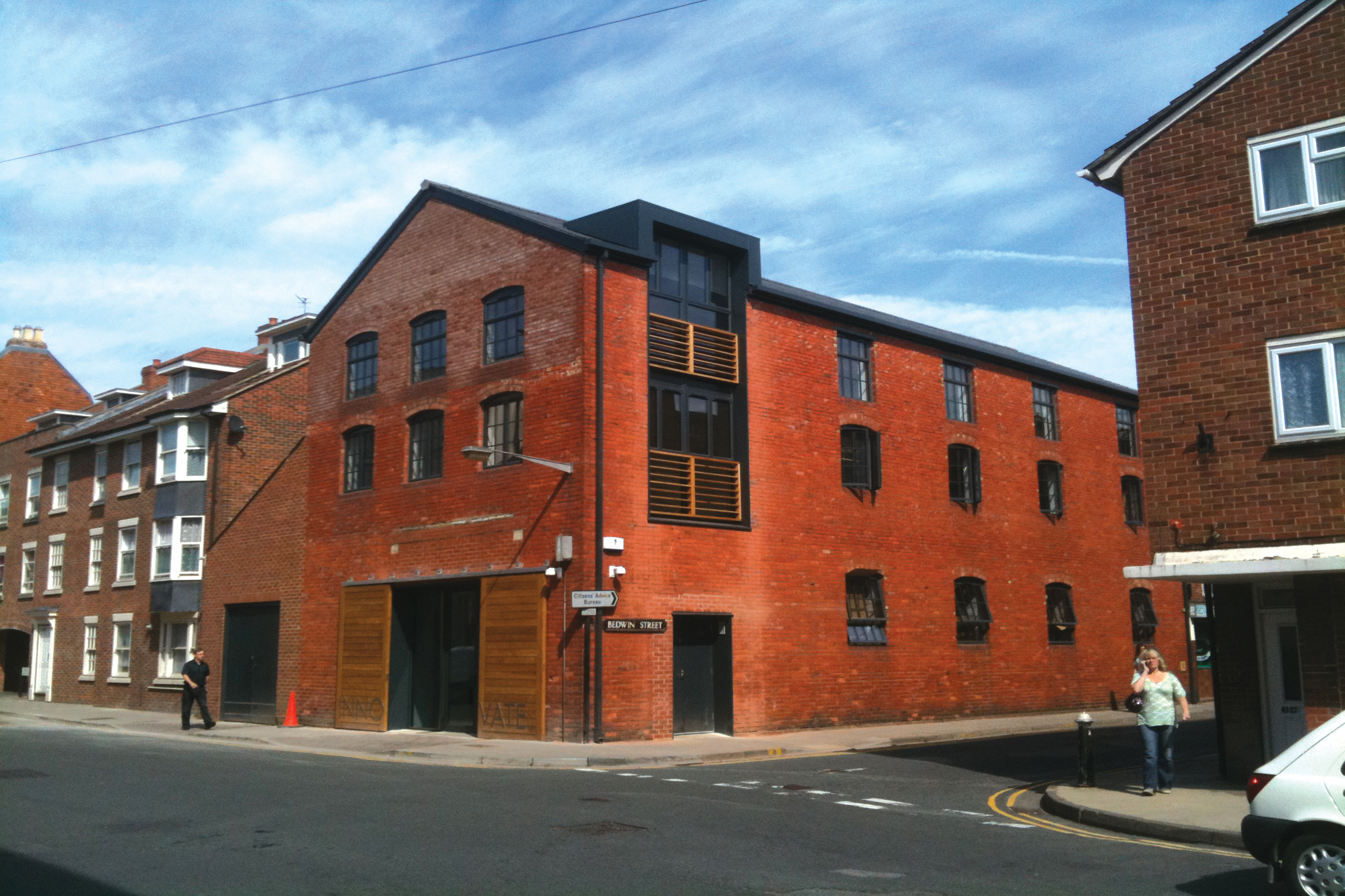 The design is modern but restrained and complements and enhances the original building fabric. Existing openings are reinforced with new sliding doors forming an improved entrance, and a new two storey glazed opening creating new views from the offices and a stronger termination to the street scene.