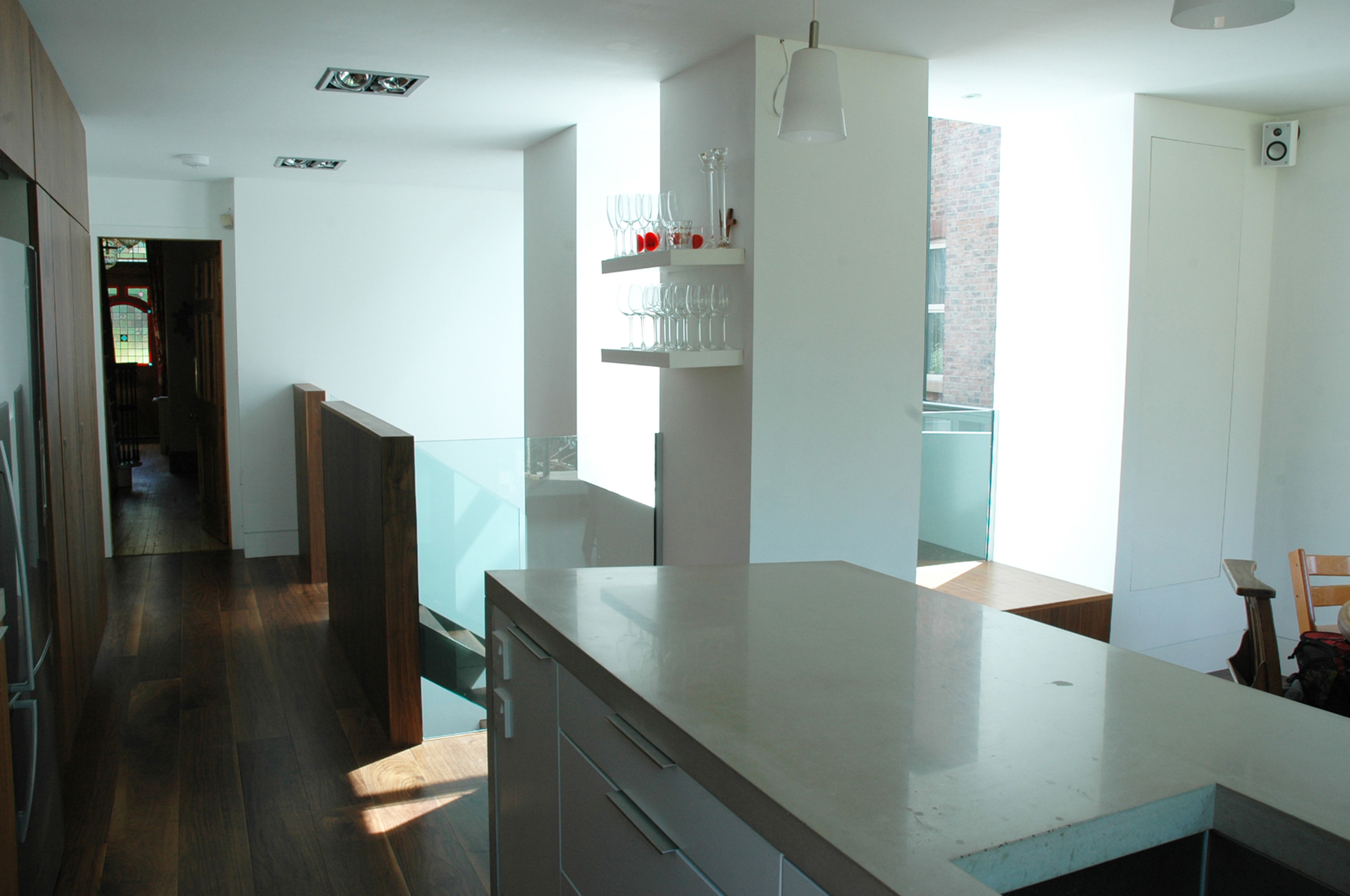 The project seeks to open the rear of the house to the garden, create a kitchen and dining space suited to contemporary living whilst improving the relationship between the inside and outside spaces by dealing with the half storey level difference in a positive manner. Transparency, light and views between spaces are all integral to the success of the scheme, creating a space that is animated throughout the day.