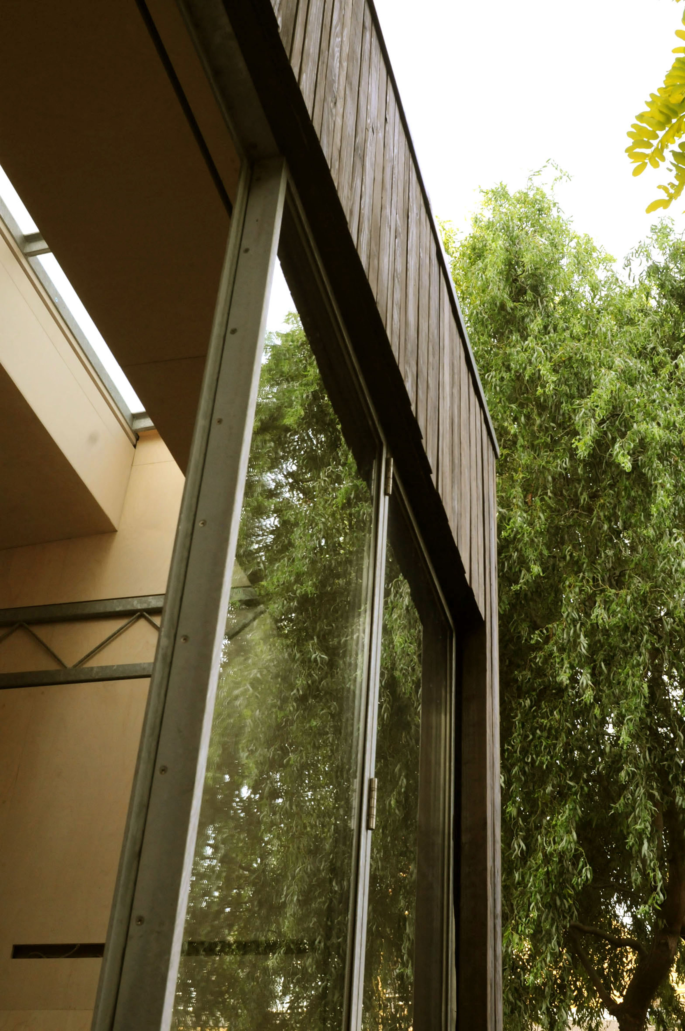 Artist's workspace set within a leafy garden in South London; beautifully detailed with sophisticated control of daylight and a contrasting plywood interior and Sugi exterior