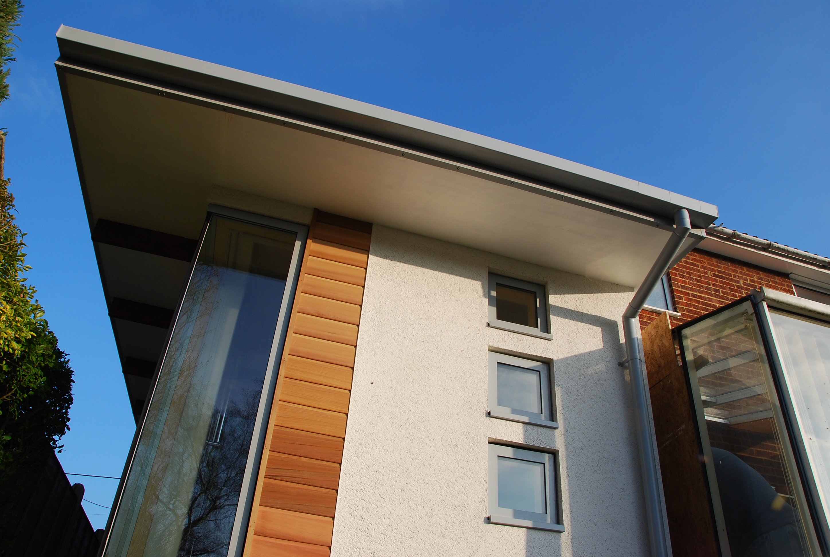 Solutions that minimised site time and cost were favoured culminating in the use of a pre-fabricated structural insulated panel (SIP) frame, a helical pile foundation system, composite panel floor and an aluminium standing seam roof. The resulting extension is economical and thermally efficient. It is a contrasting contemporary addition to the existing 1960’s vernacular dwelling providing pleasant views of the garden to the west.