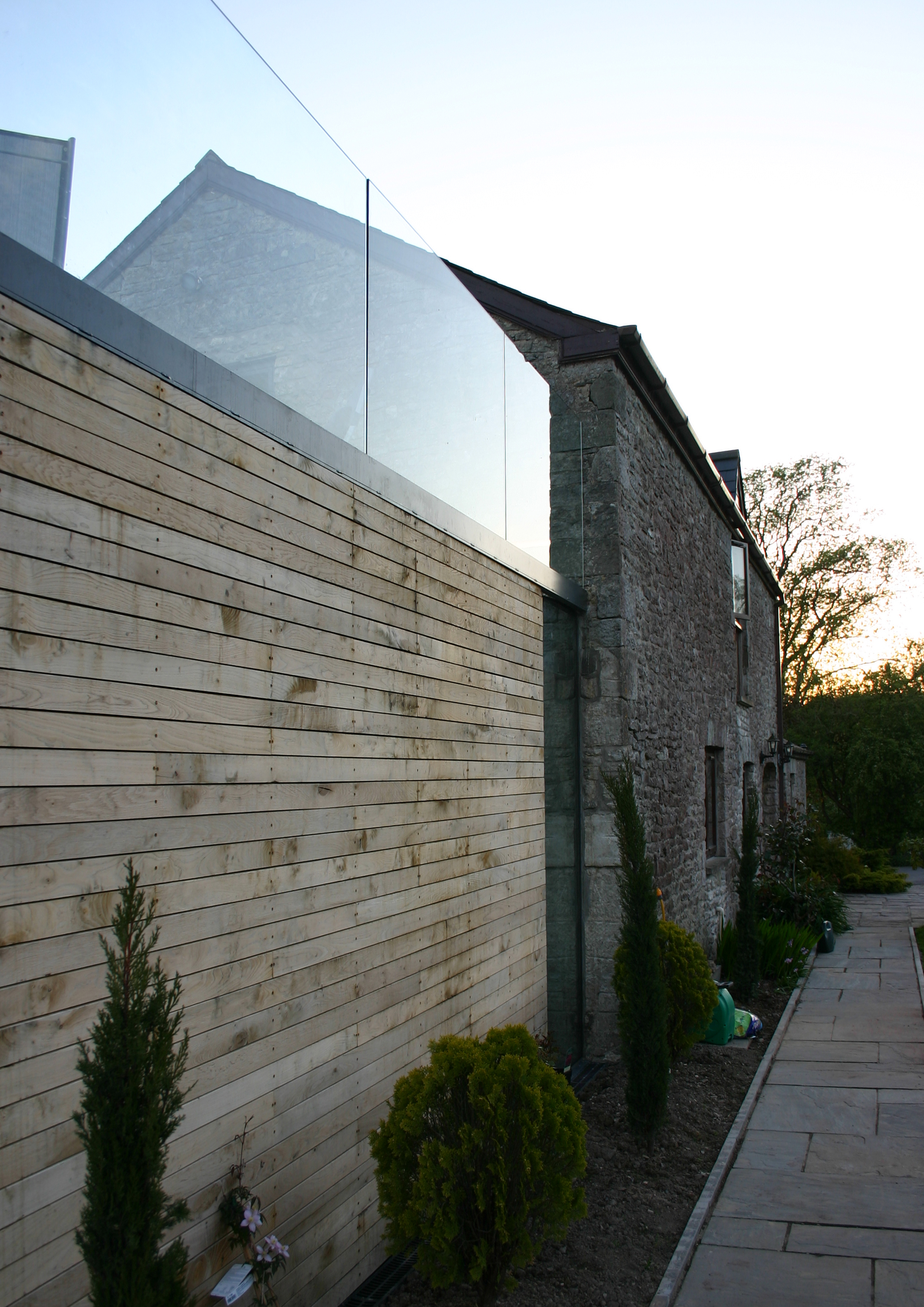 Frameless Glass and Timber clad extension to an existing barn conversion (barn conversion by others)