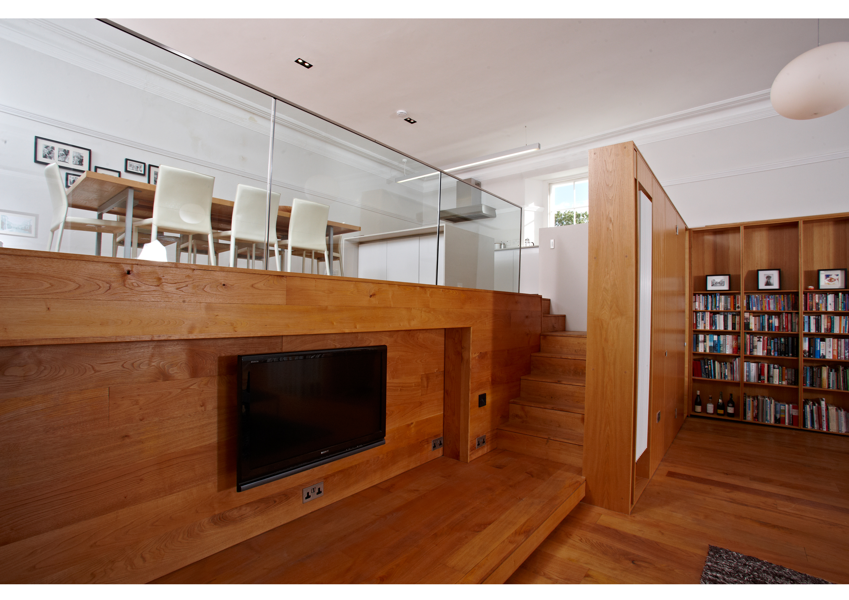 The building is arranged with the lounge and dining areas on the upper floor, utilising the high ceilings and tall windows that point towards its original use as an Assembly Room for the adjacent hotel. The ground floor, which had previously been used as a bank, had never been connected to the upper level so a new staircase was required to connect it to the bedrooms, bathrooms and courtyard at ground level.