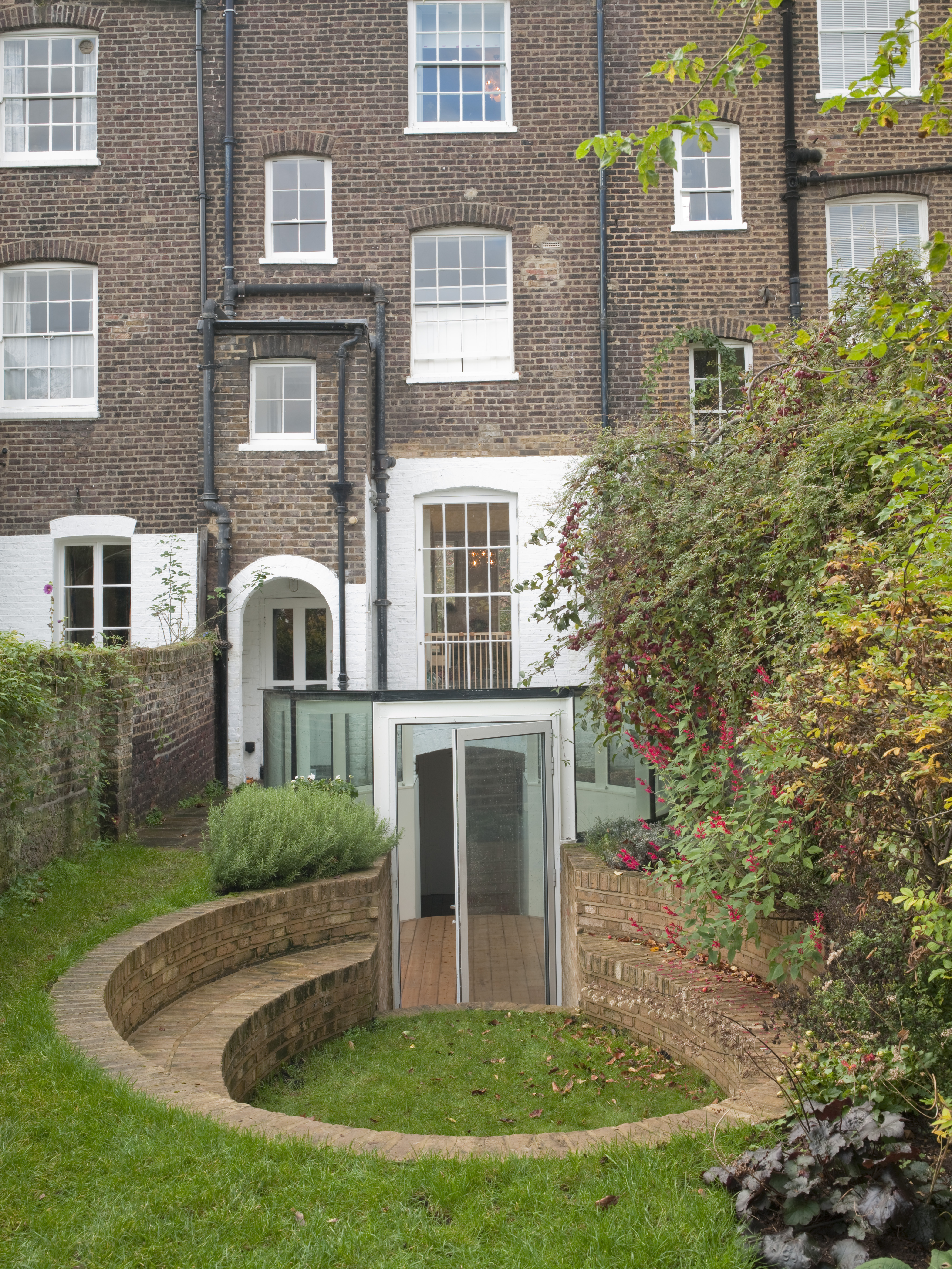 Our brief was to create an extension that connects with both the ground and basement levels. The main challenge was to deal with the significant change in level between the basement and rear garden area to create a simple transition between inside (and low down) to outside (and high up).