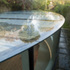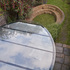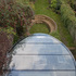 The concrete walls of the extension are curved in plan which makes them inherently stronger in retaining the earth and the existing historic boundary walls above. Like a droplet of mercury, the glistening oval extension seems repelled from the brick boundary walls; it’s surface tension keeping itself to itself.