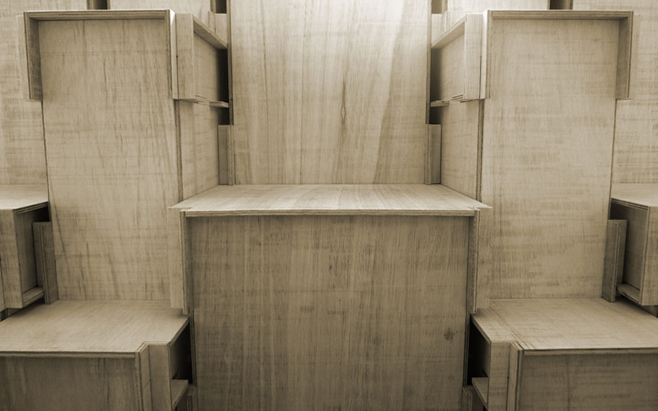 The indoor units interlock and self-stabilize without the use of fasteners. The plywood joints become a material expression of their structural purpose. In addition to bringing in the outside greenery, the dimensions of the indoor units were ergonomically proportioned to be used as additional seating.