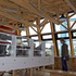 The angular geometric form of the building, with a glazed crane-facing elevation inflected to allow dramatic views up to the jib crane, is reminiscent of the huge plates of steel and equipment lifted by the crane in its operational life, and is intended to strike a feisty pose in defiance of the enormous structure above.