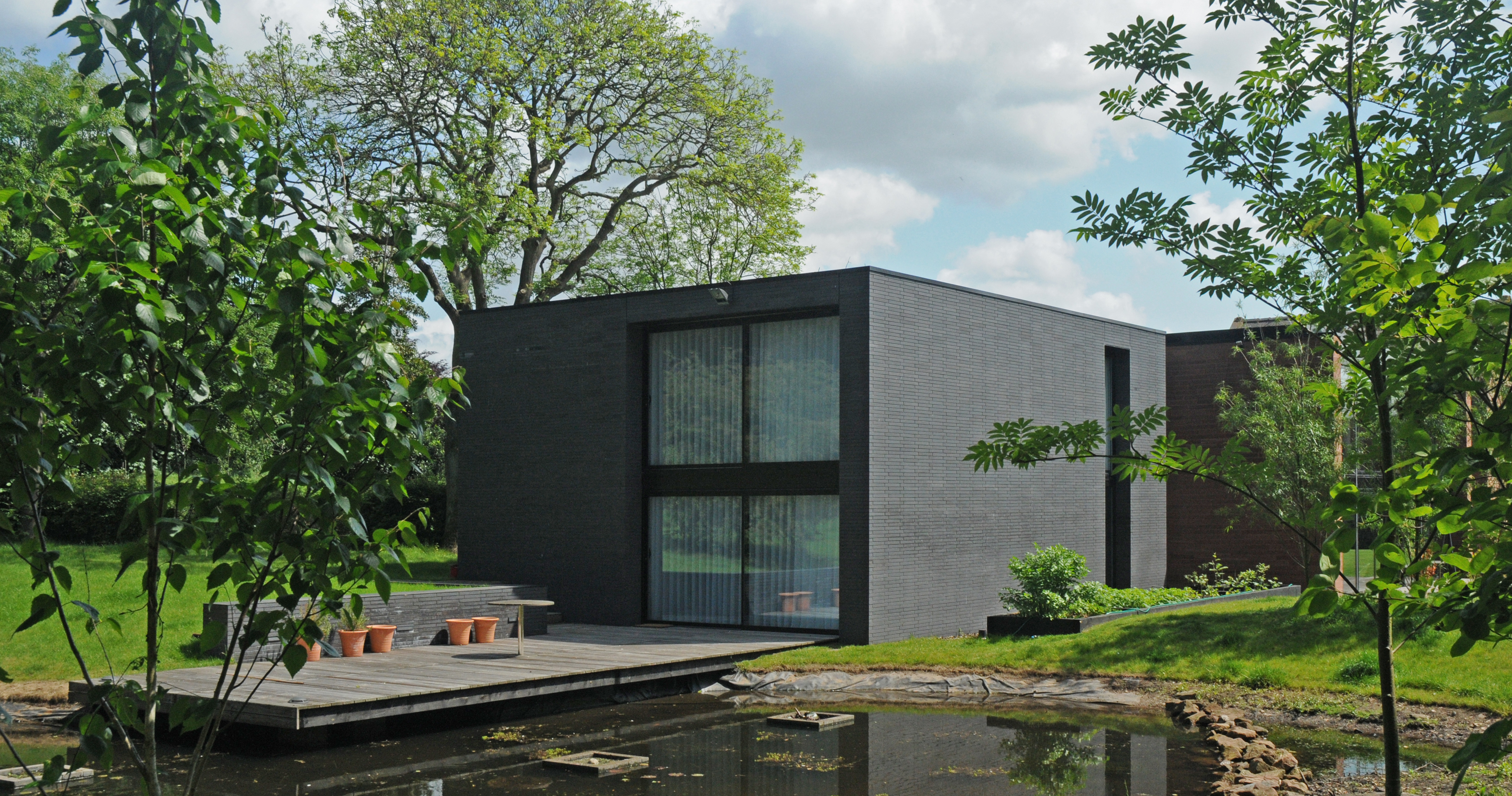 Brick annex to a an extension of a Grade II-listed farmhouse that was completed by the same architect in 2003