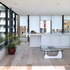 A series of internal partitions were removed to create large open-plan spaces finished with polished concrete screed, white walls and frameless glass balustrades.