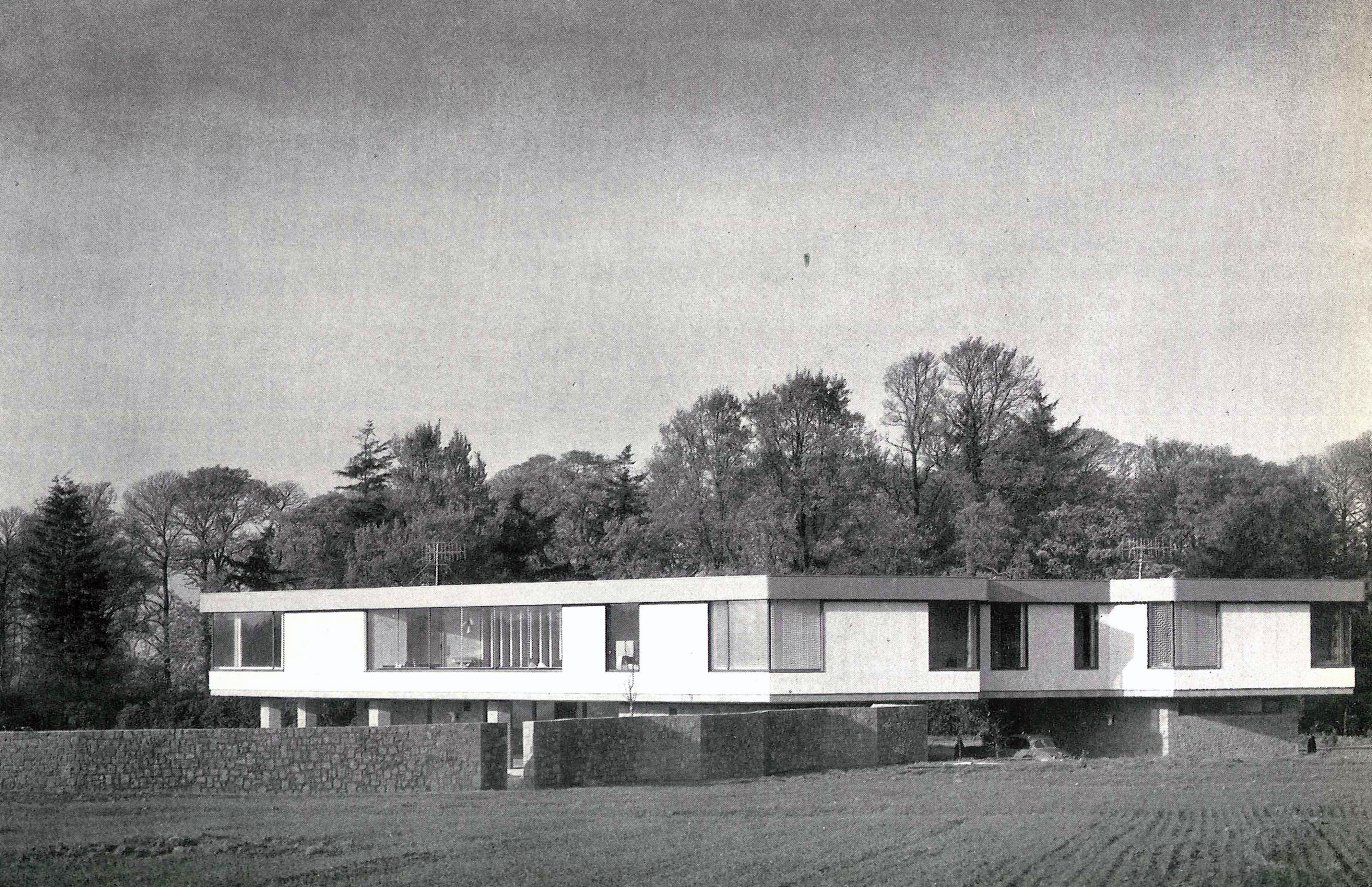 Low spreading country house with accomodation placed on the first floor for panoramic views across surrounding countryside