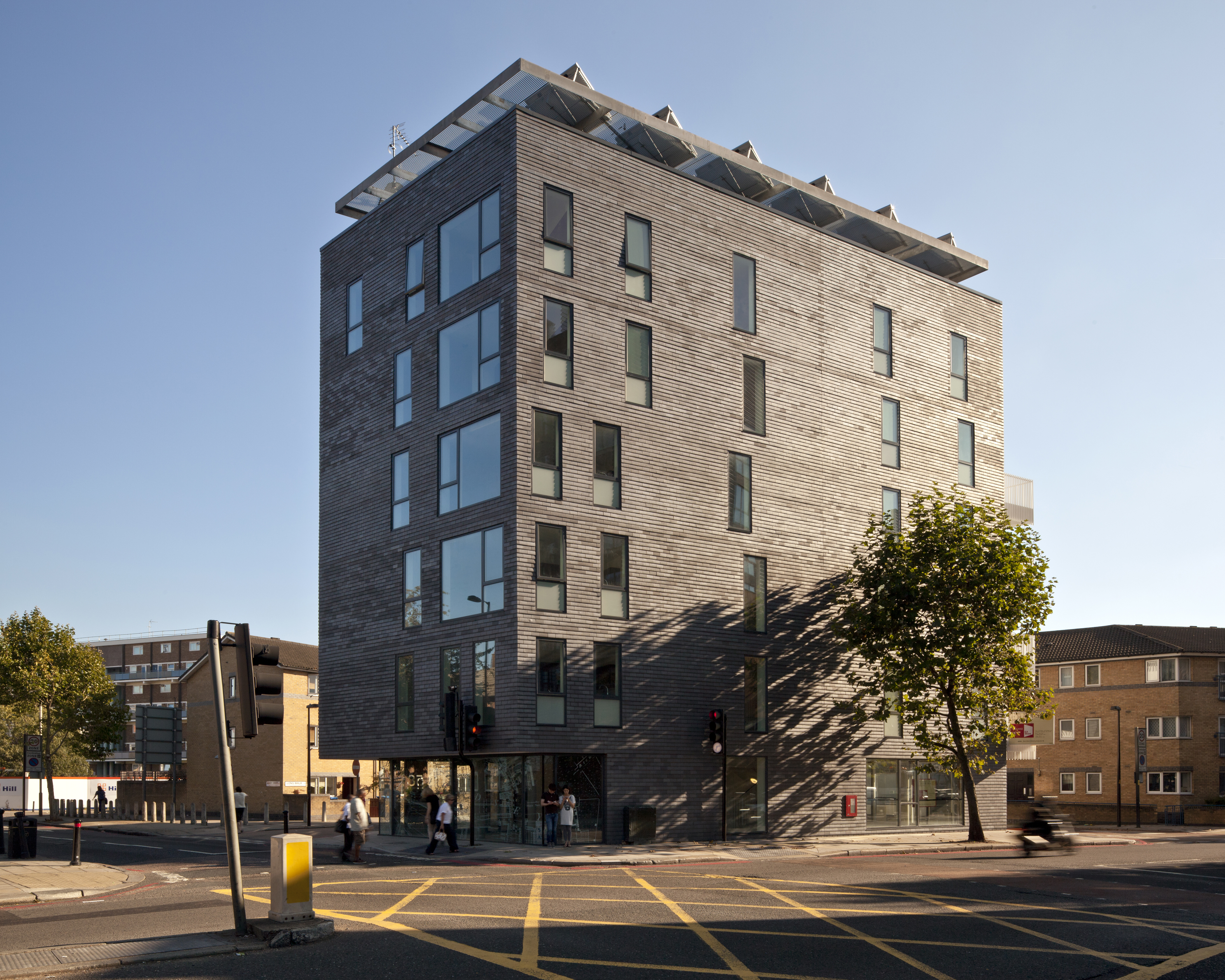 The five storey block forms part of the Bermondsey Square Redevelopment and provides 13 new affordable rented one and two bedroom units, above a commercial unit placed on the ground floor.