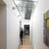 A long corridor with a continuous glass roof that terminates with a framed view of the garden runs the entire lenght of the building and provides access to the four bedrooms, study, bathroom and laundry.