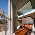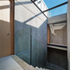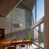 The first floor living space looks onto the double-height kitchen/dining room on the ground floor. The whole space is naturally lit by through the full-height glazing that looks onto the garden. The first floor also contains a bedroom with another guest bedroom and the master suite placed on the second floor.