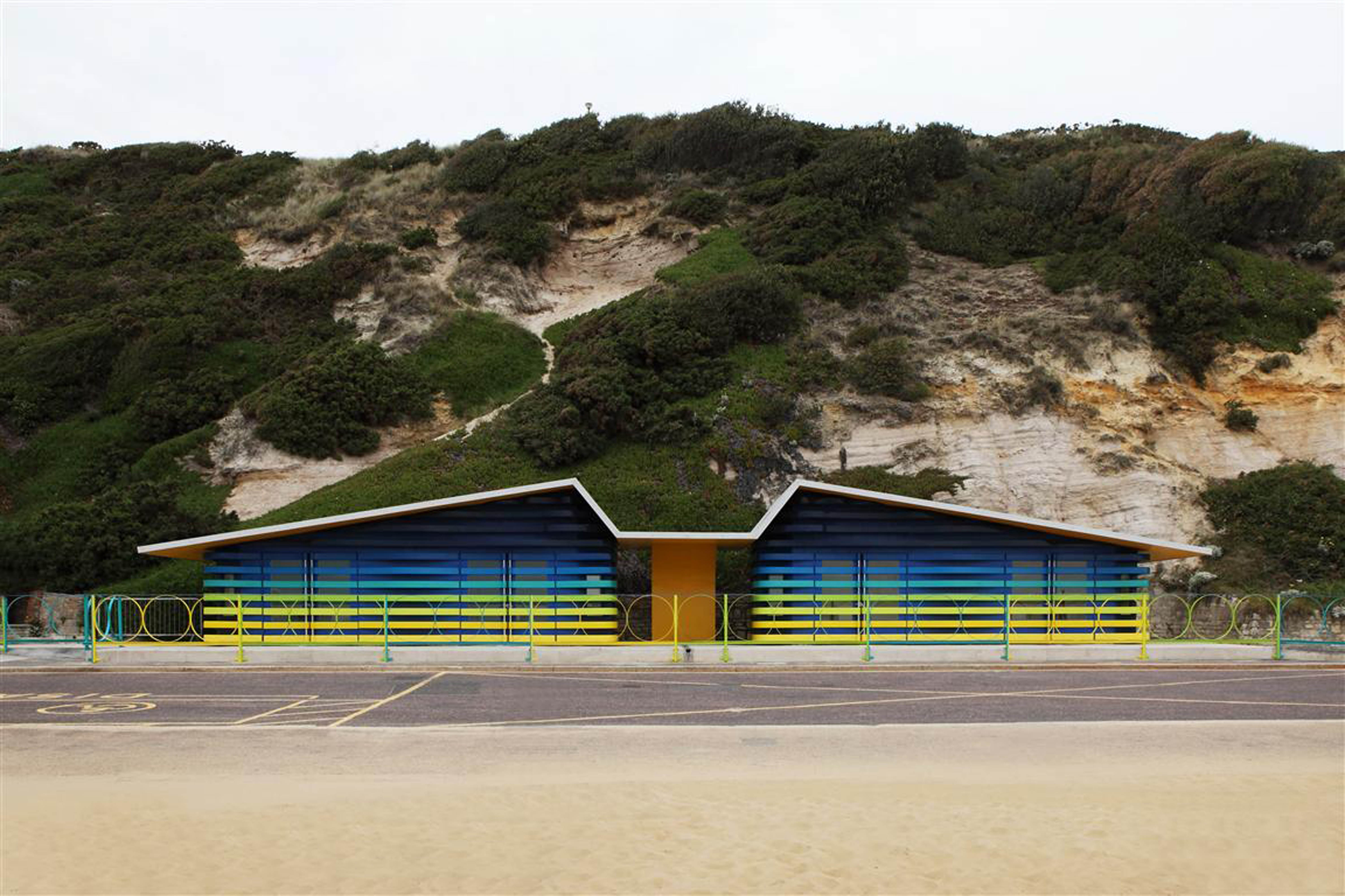 Beach huts on Boscombe seafront, inspired by traditional seaside imagery