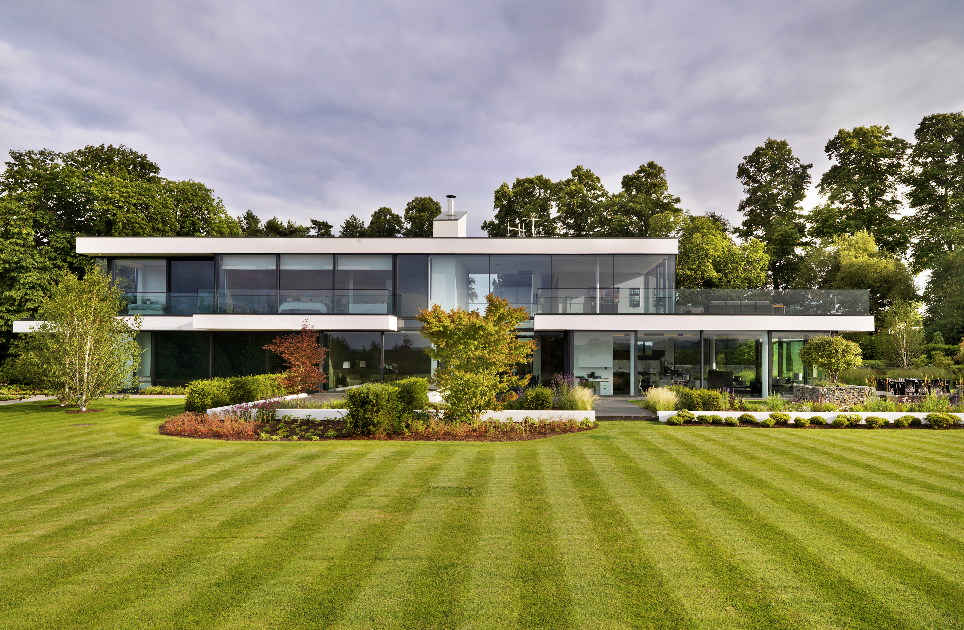 Contemporary country house set within twelve acres of elevated grounds on the banks of the River Thames in Berkshire