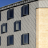 Local ashlar Blaxter Sandstone-clad bookends frame the north and south facades. Between these bookends, the north facade absorbs daylight through floor-to-ceiling glass. Ceramic-lined glass infills placed between twin aluminium mullion cover caps mask the cross-walls between hotel rooms, interrupted by continuous spandrel zones, which stretch between the bookends.