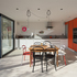 The material strategy treats the external surfaces of the extension as a sequence of timber panels, framed by a galvanised steel band.