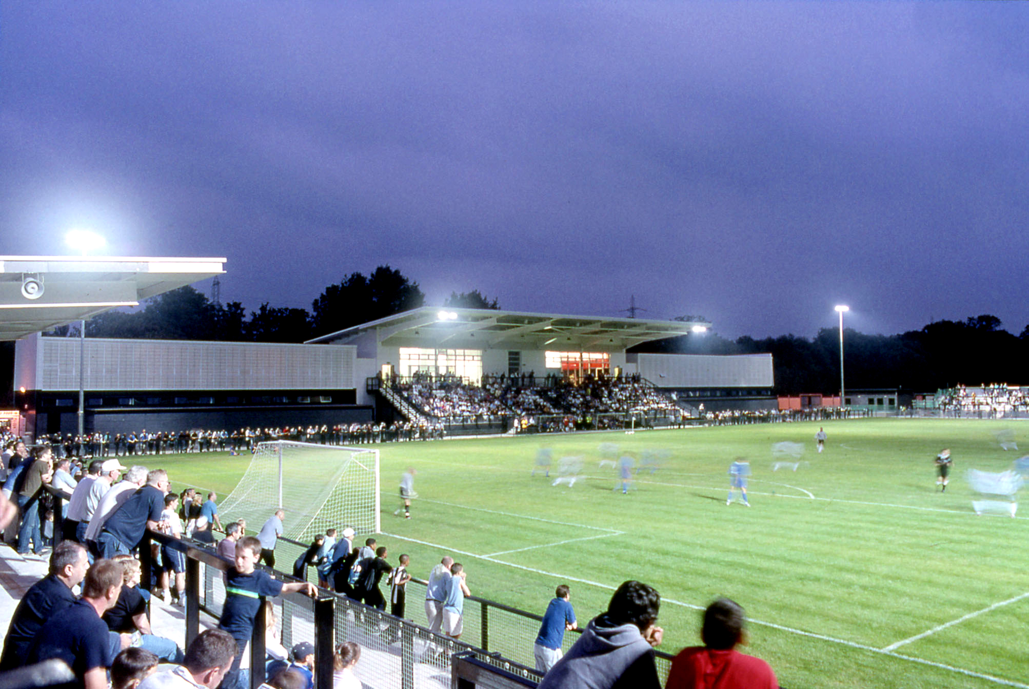 The project comprises a new football stadium for 3000 spectators extendable to 6000. There are three pitches including an all-weather sports surface which can be used for hockey and five-aside football. The masterplan for the project has minimal parking, with the incorporation of a sustainable travel plan encouraging local bus, tram, train and cycle use. The landscape design addresses the need for floodwater holding areas to meet Environment Agency standards.