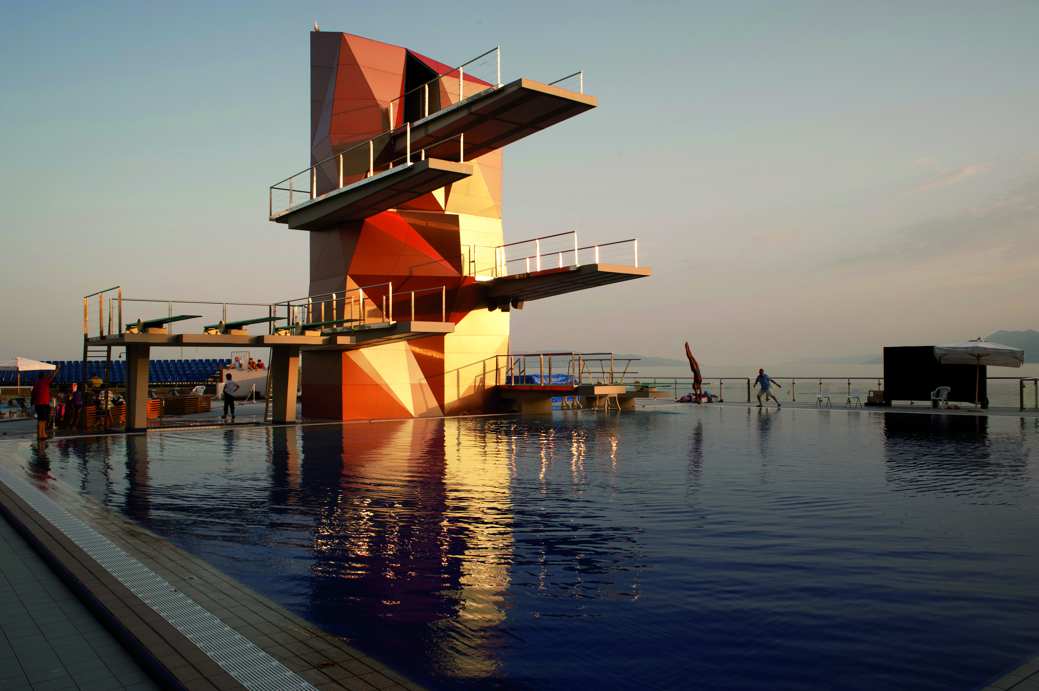 The new diving tower built in 2012 for the Rijeka Olympic centre has five diving boards placed at different heights designed according to FINA rules.