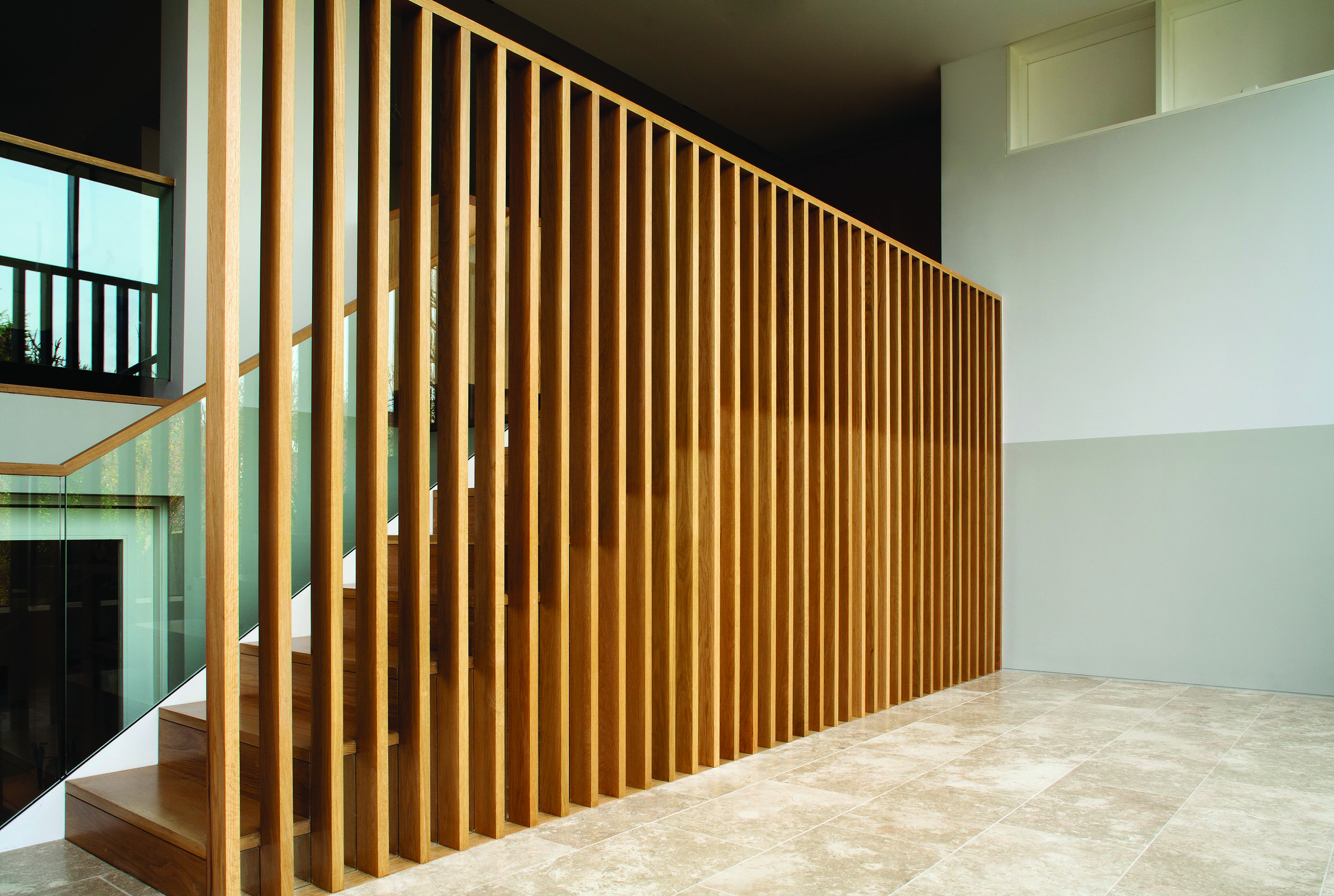 - Bespoke oak stairs and tall balustrade: Subcontractors