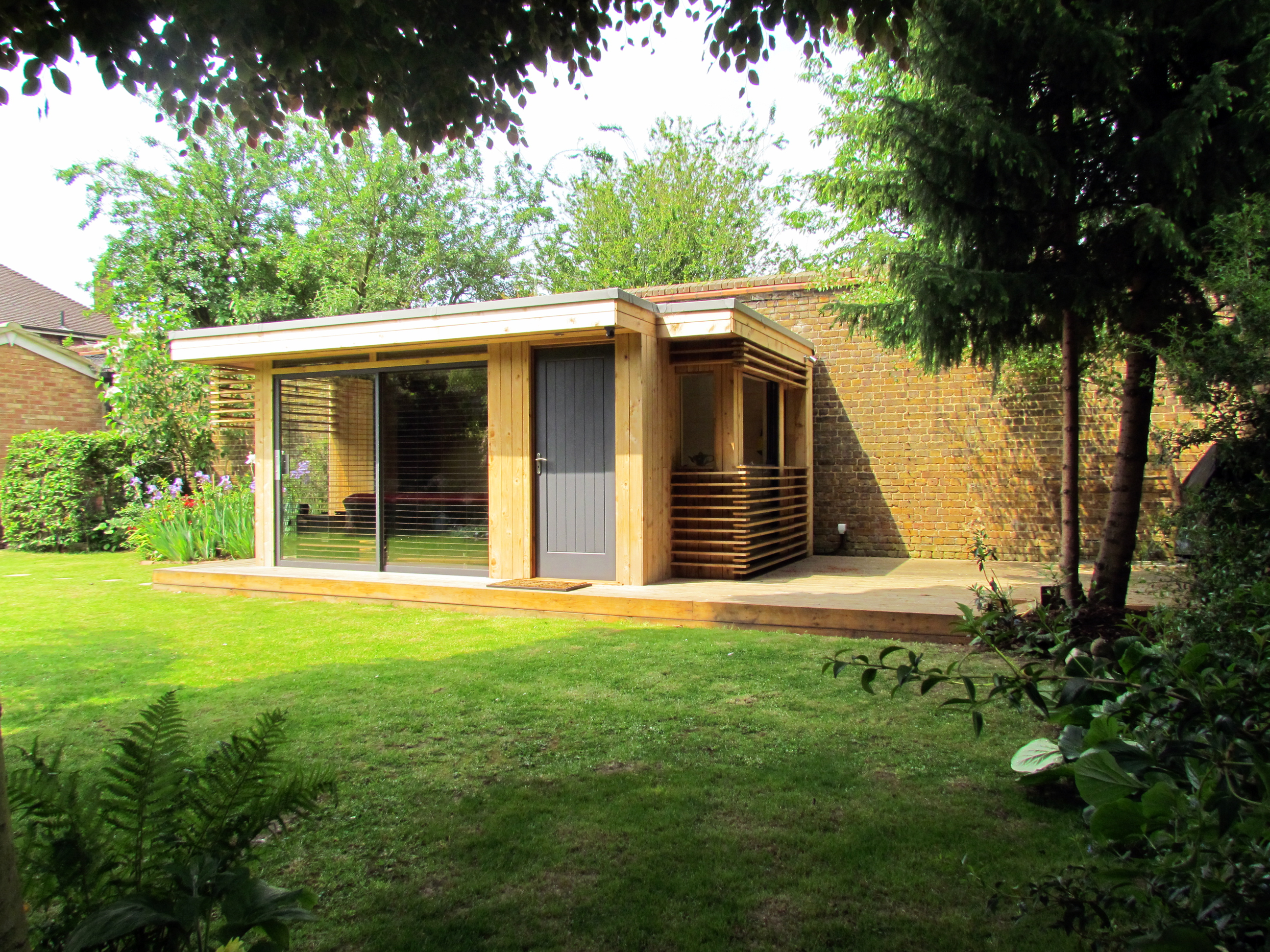 The aim for the building is to balance the functionality of a room in the home whilst also maximising its location in the garden. It achieves this by utilising large areas of glazing to provide a backdrop of the garden's unique features. The orientation of the form is such that the trees are framed by the glazing when viewed through the building from the house. Located along the north wall of the garden in order to exploit these views, the completed form mitigates the adverse affects of direct sunlight from the south by using shading features and the surrounding trees.