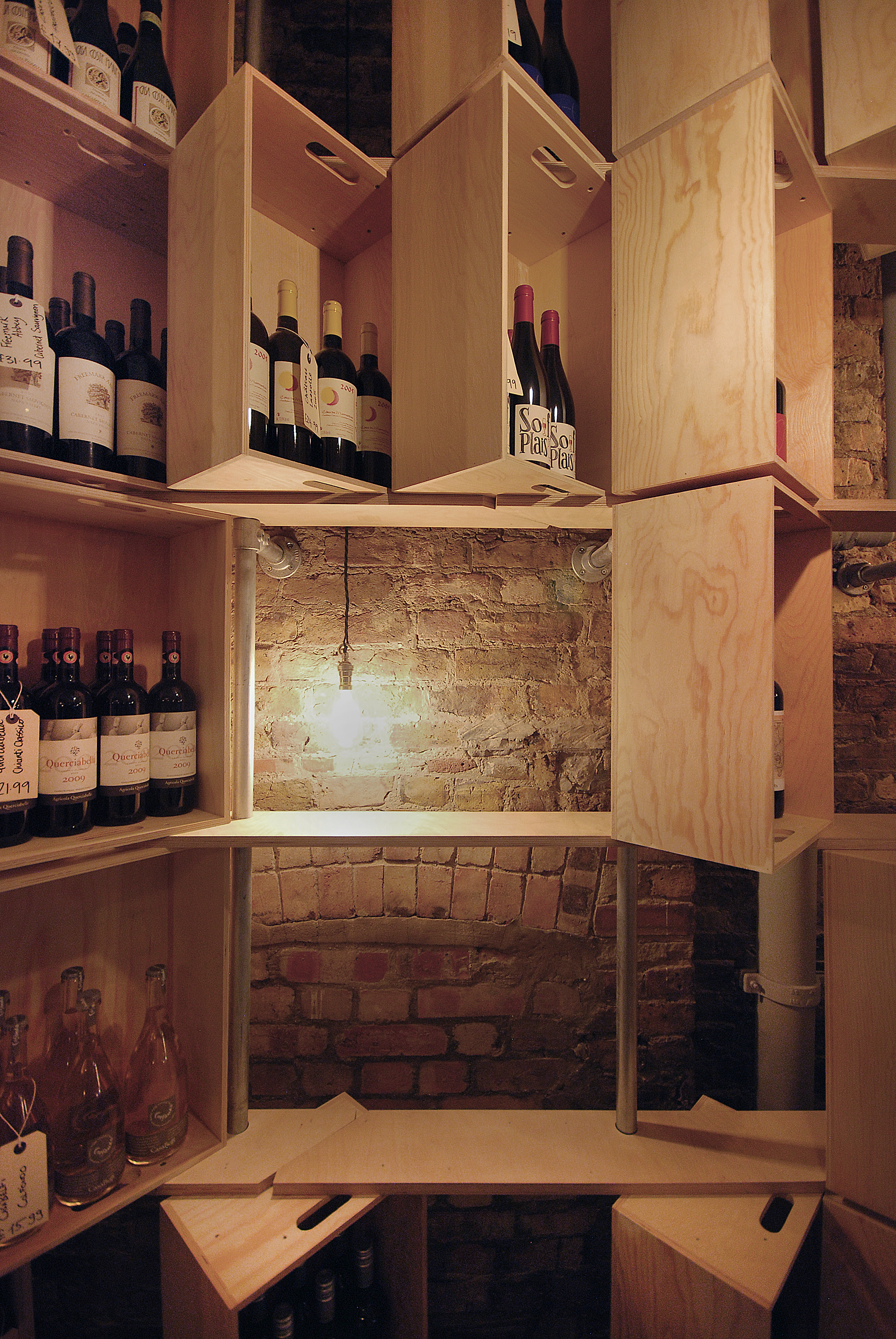 A fit out for a specialist wine shop and bar in Wapping
