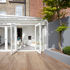 This five story house in Battersea Square has a small diamond shaped footprint. The remains of a bakery which was once here are still in the basement and the large chimney it shared with the other local shops stands several meters away.