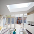 Between the ground floor and the basement we created a large void that connects the two spaces and makes the low ceiling height of the rest of the basement feel comfortable. It also brings the old bakery oven right into the centre of the home. We extended the building to the rear at ground floor level. The new extension and bespoke kitchen follows the angles of the house and opens up the ground floor to the garden. It also frames the chimney breast mentioned earlier through a skylight.