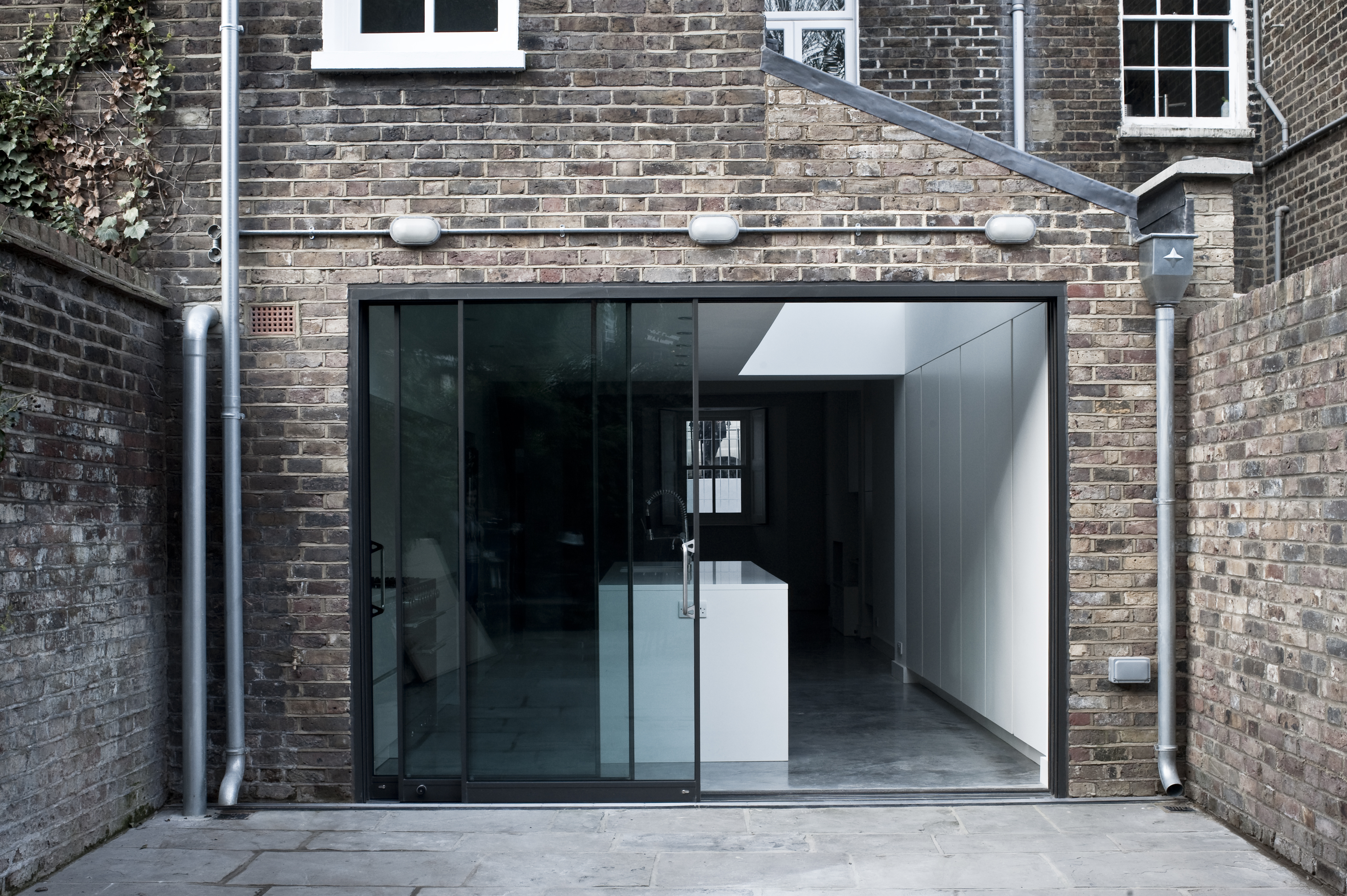 The remodelling and extension of a Victorian terraced house for two international fashion designers. One of the clients is Japanese and both have a strong interest in Japanese culture and aesthetics. The project was developed over a number of years through a discourse threading together ideas about architecture, clothing and fashion, and revolving around ideas of how a building might be dressed, distinctions between grain, pattern and texture and the shared desire for a consistent and legible ‘signature’ through a disparate set of elements.