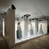 The space exists for four hours; all materials have been selected so that they can be re-used. The floor and lights are hired, the column structure is re-used and the stretch fabric is turned into coats as part of the next Teatum Jones collection.