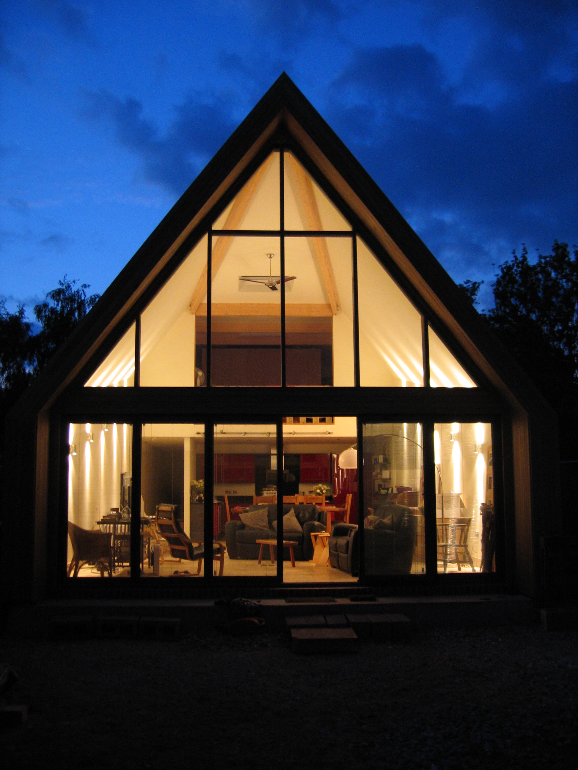 The site had an existing planning permission for a bungalow, situated on a quiet private road with single storey bungalows dwellings for neighbours. It was their wish that the house be arranged on 2 storeys and to echo Mikes Norse ancestry, capture the feeling of Viking long house. The Modens stipulated both a maintenance free and sustainable low energy design.