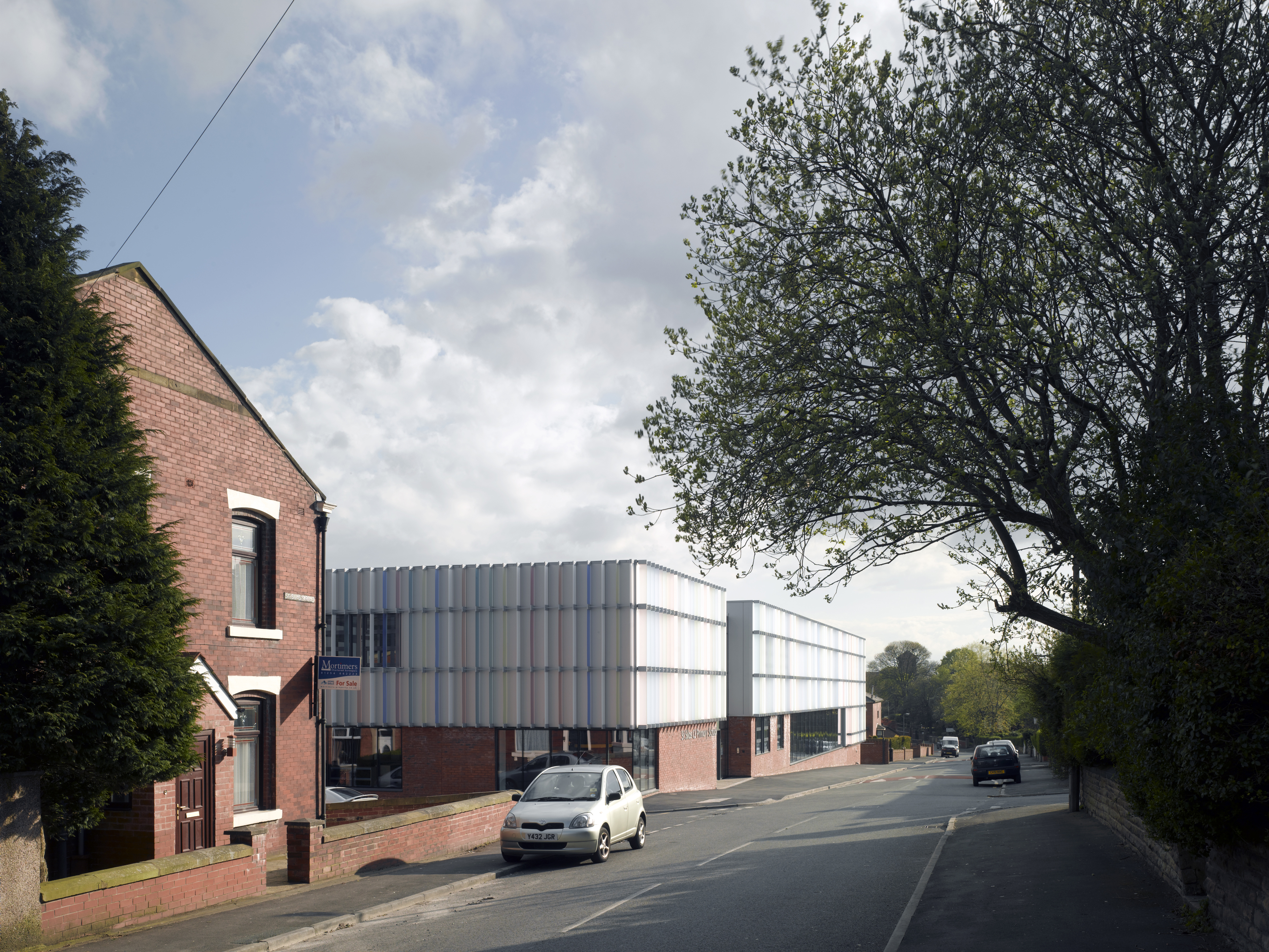 Effects of light and colour are used throughout, with locally sourced, coloured perspex step in-fills flooding dining areas with a rainbow of light. The ‘wrapping’ elevation cladding system is a series of coloured, translucent and solid perspex fins designed to create a cost effective rapid solution.