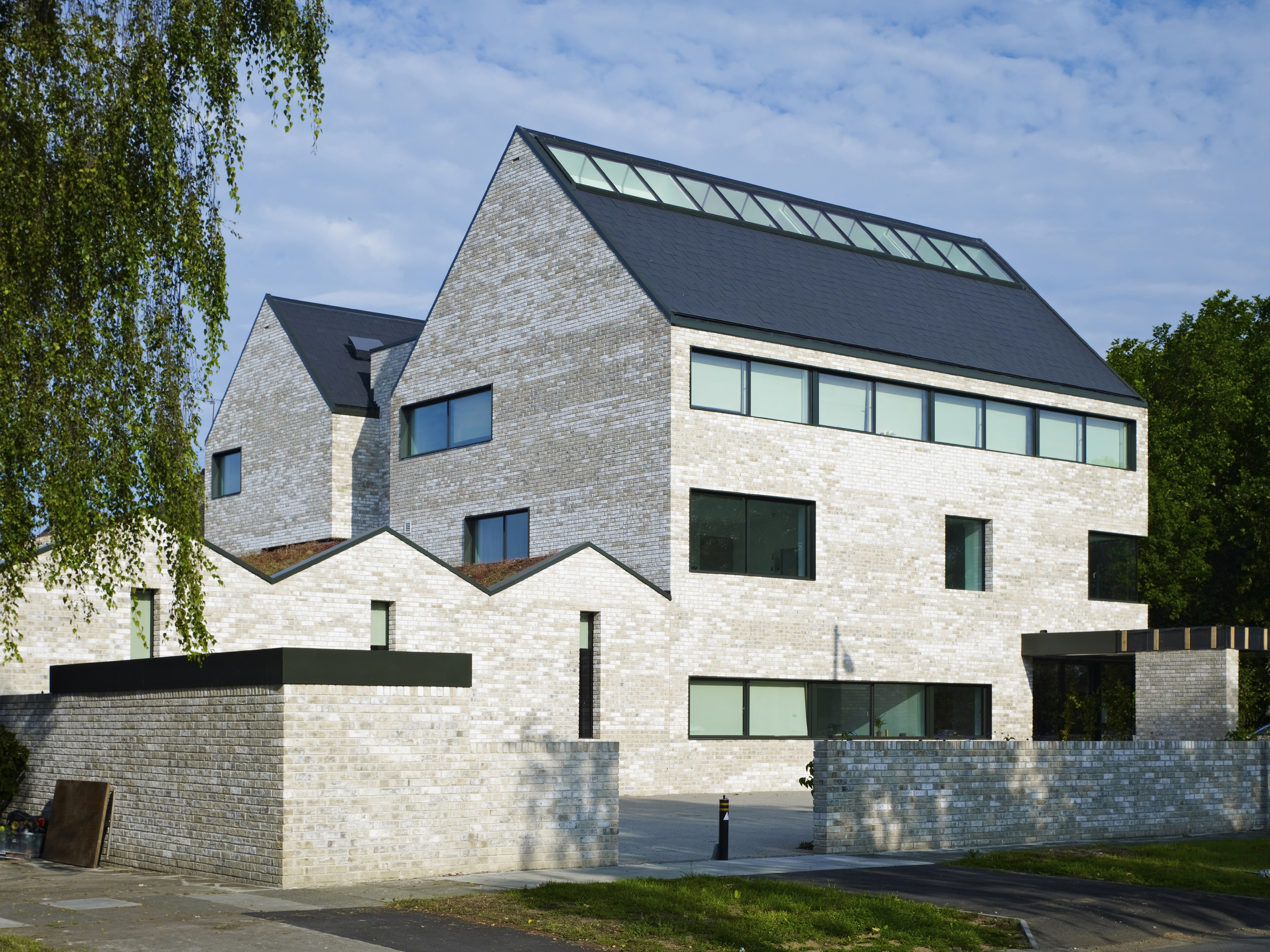 Arranged in an L-shaped plan, the brick building is formed of two north facing gables with a single-storey multi-pitched extension at the rear that opens onto a south-facing private courtyard.