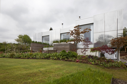 The outer skin of the building is made of hand-crafted full-height panels, which are electronically motorised to fully slide open. The panels are highly insulated and allow the occupants to control and vary the thermal performance of the house, depending on the time of day and season. The panels are constructed of locally sourced timber and clad with mirrored aluminium to reflect the landscape and camouflage the structure in its surroundings.