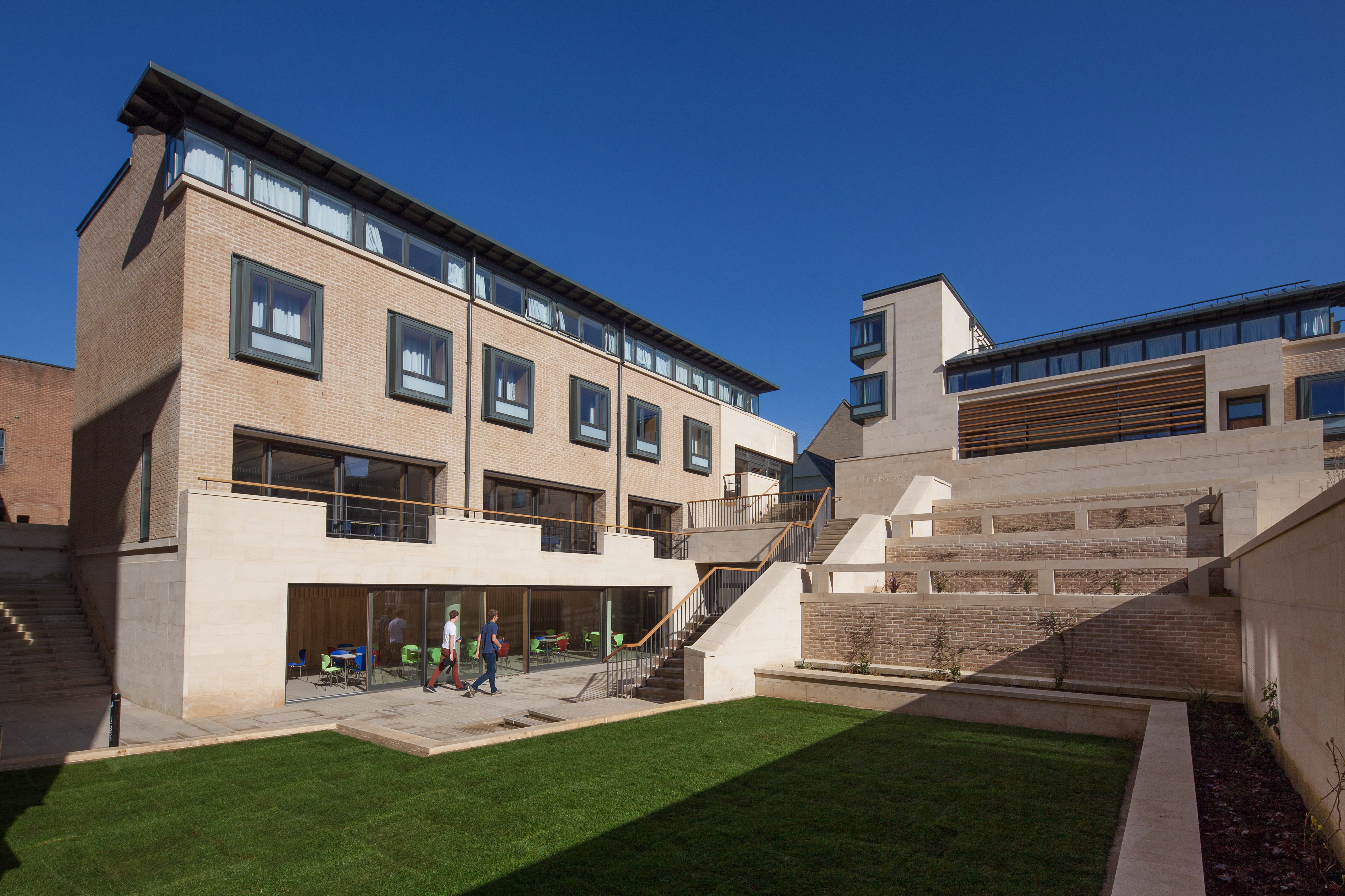 The extension consists of five buildings arranged around a new quad, shared with the neighbouring Lutyens-designed Campion Hall.