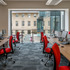 The introduction of a new ETFE inflated roof to an existing underutilised external courtyard creates an internal public space overlooked by the open plan office above. The courtyard houses a coffee bar, main reception, information points, exhibition area and seating. The remaining sides of the courtyard are opened up to a new public library, dining area, registry services and meeting rooms.