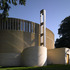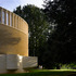 The elliptical chapel sits on the brow of a hill surrounded by sweet chestnut, beech and cedar trees in the garden of Ripon College as part of a larger expansion of the college's campus.