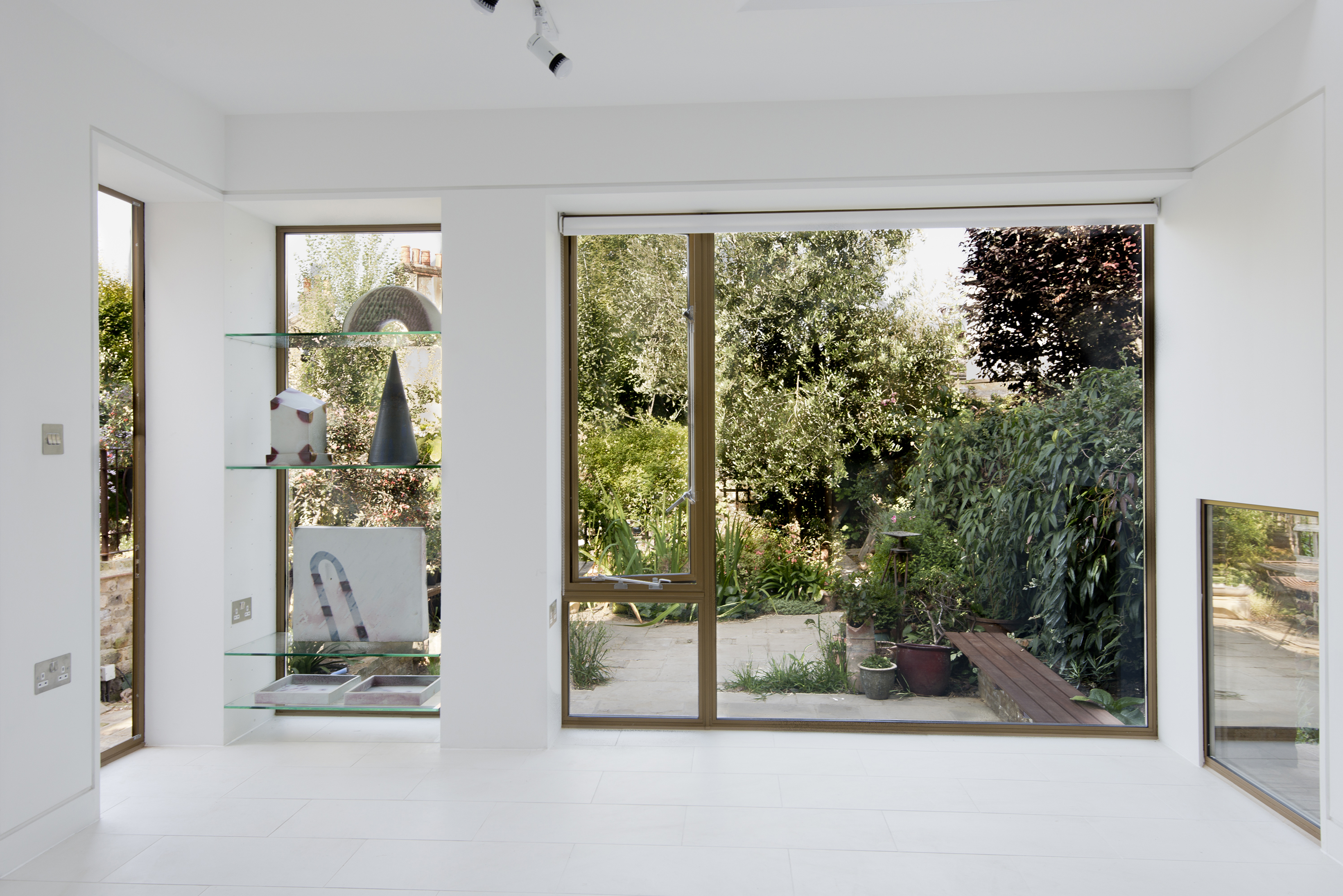 A subtle manipulation of levels creates a dynamic physical relationship with the beautiful garden beyond, a kind of reflective balance between inside and outside, art and landscape.