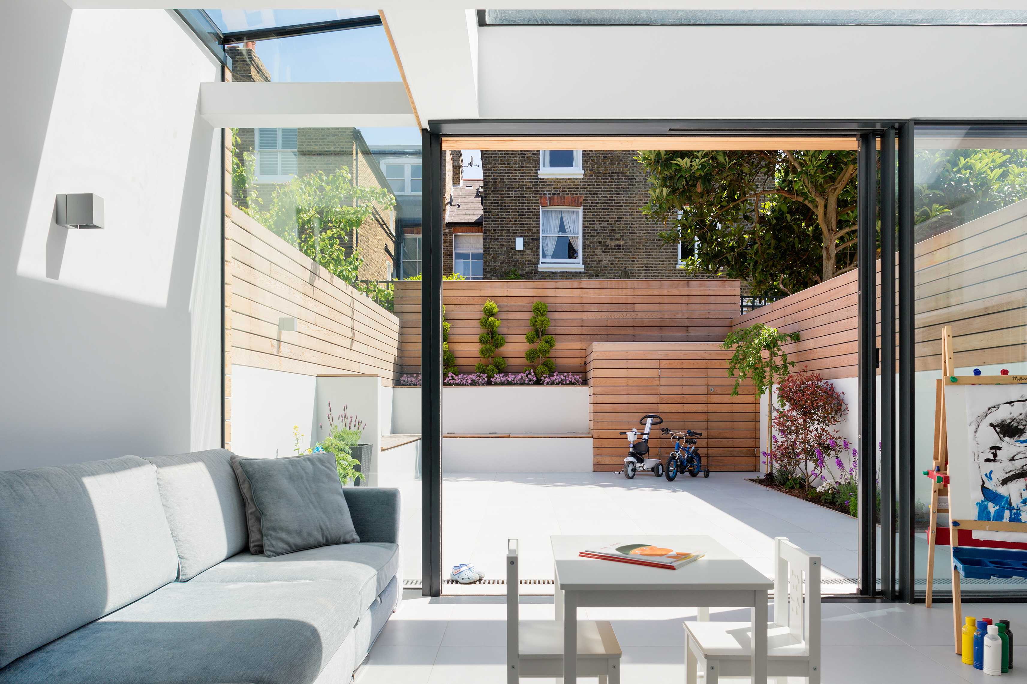 The brief was to refurbish a tired Victorian terraced house in South West London to create an open-plan kitchen, dining and family space as well as a landscaped garden oasis at the rear.