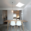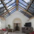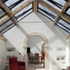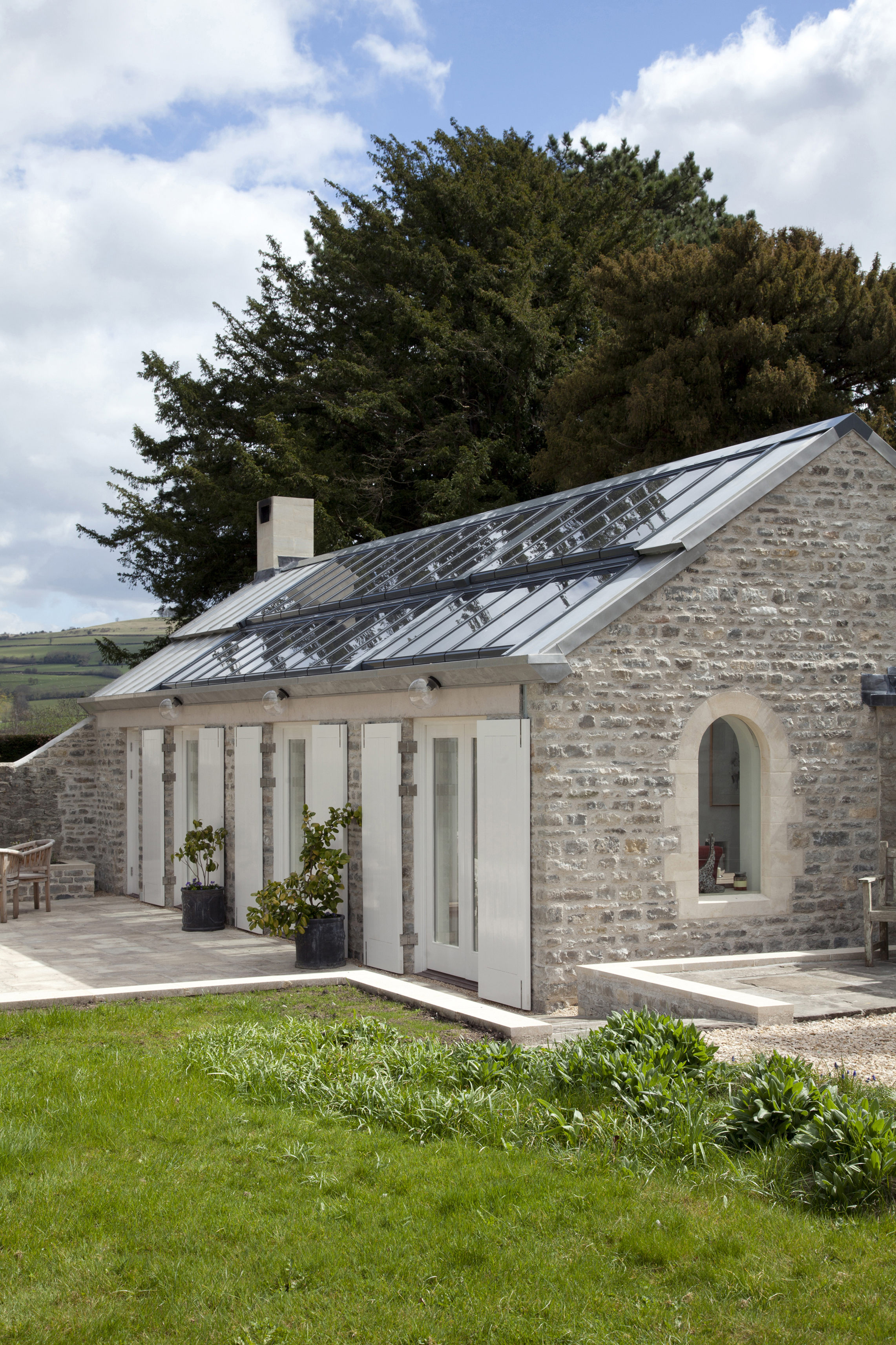The resulting building is in contrast to the massive stone and tiled house, with largely top lit rooms combining a Vitral roofing system with tern coated stainless steel roofing carried on elegant stainless steel trusses featuring flitched rafters. The walls are in timber studwork clad externally with Blue Lias stone to compliment the existing house. Ashlar stone arches and a new window to the west provide a subtle link to the Norman features of the original house.