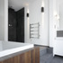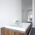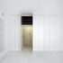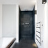 he ribbon runs through a glazed separation between corridor and bathroom, a screen that is made of electrochromic glass which can be changed to be an opaque screen.