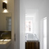 This lead to the main concept, a meandering ribbon which becomes an inherent part of all main functions of the flat, the kitchen, the vertical and horizontal circulation as well as the bathroom furniture, i.e.bathtub