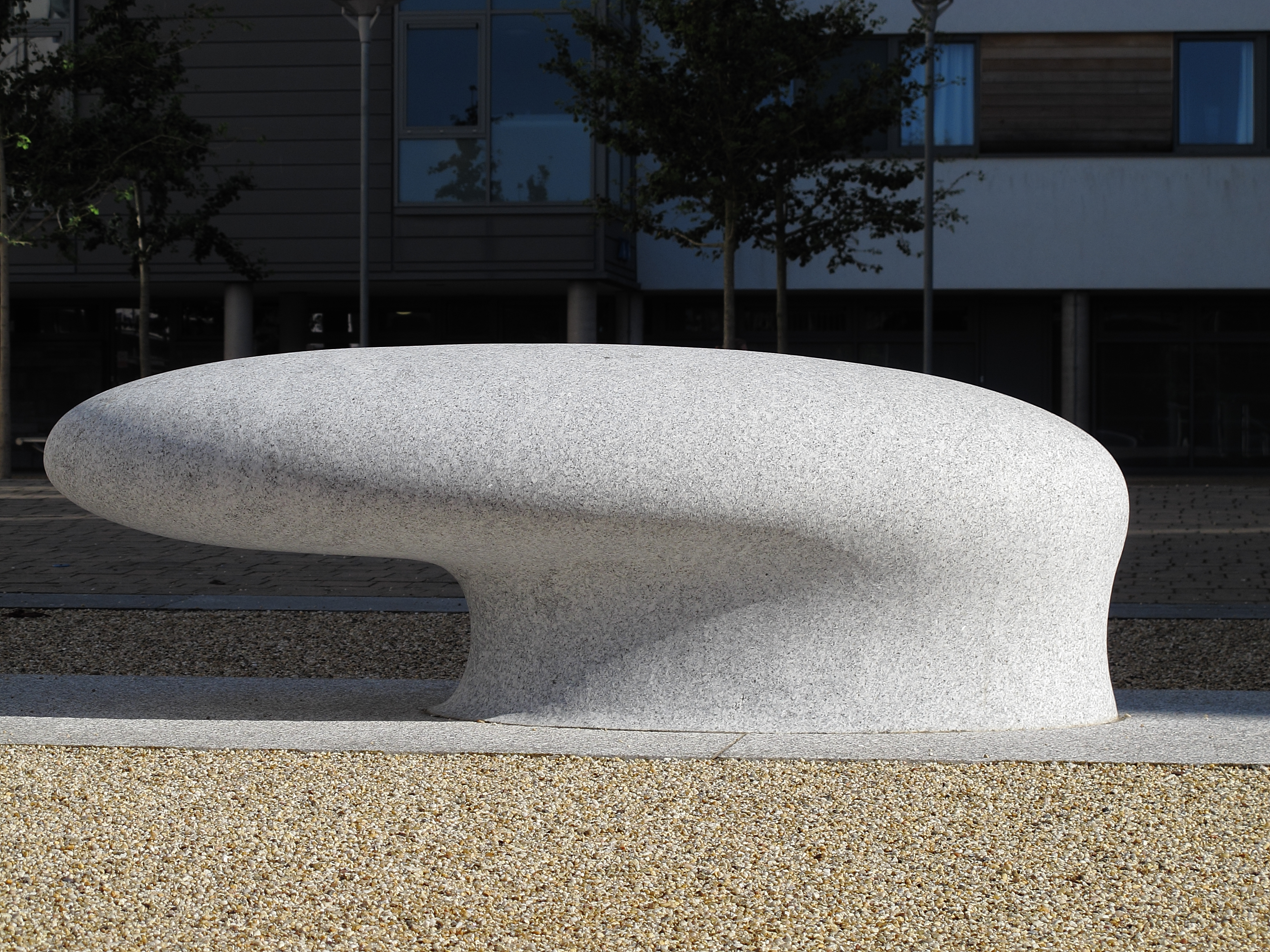 The piece comprises two opposing forms redolent of nautical bollards. Monuments to journeys. While referring to the many historic voyages starting and ending in Plymouth they also mark the journeys taken by students, both physical and through time.The pieces were hand carved from solid blocks of local granite from the De Lank Quarry in nearby Bodmin Moor, just over thirty miles away from Plymouth.