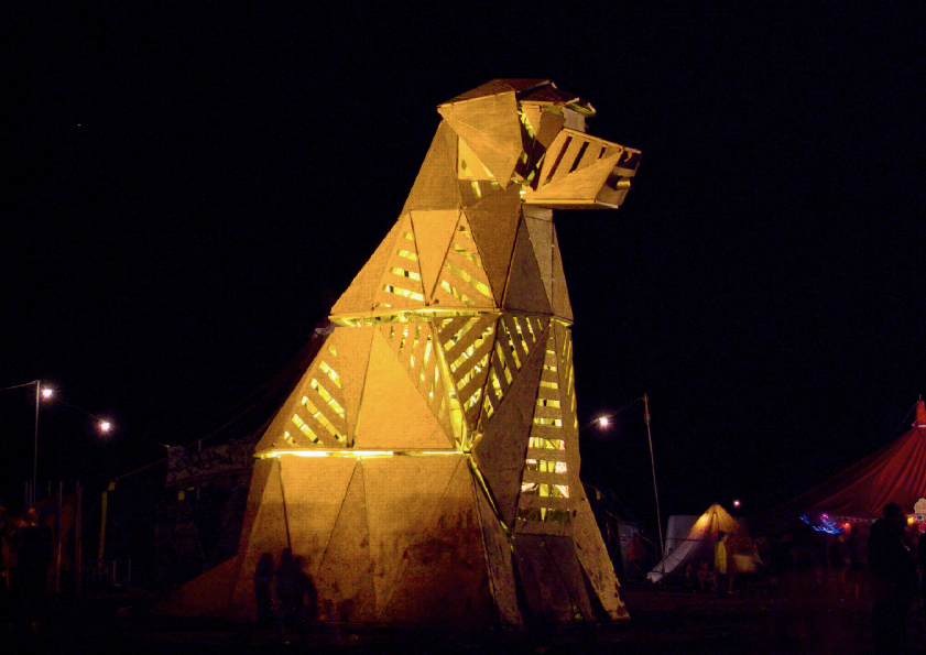 Festival goers were invited to pay homage to (wo)man’s best friend, the 9.5m tall canine temple. Responding to the festival’s theme of ‘Standing on Ceremony', the architect created the temporary timber structure inspired by giant statues of deities from around the globe.