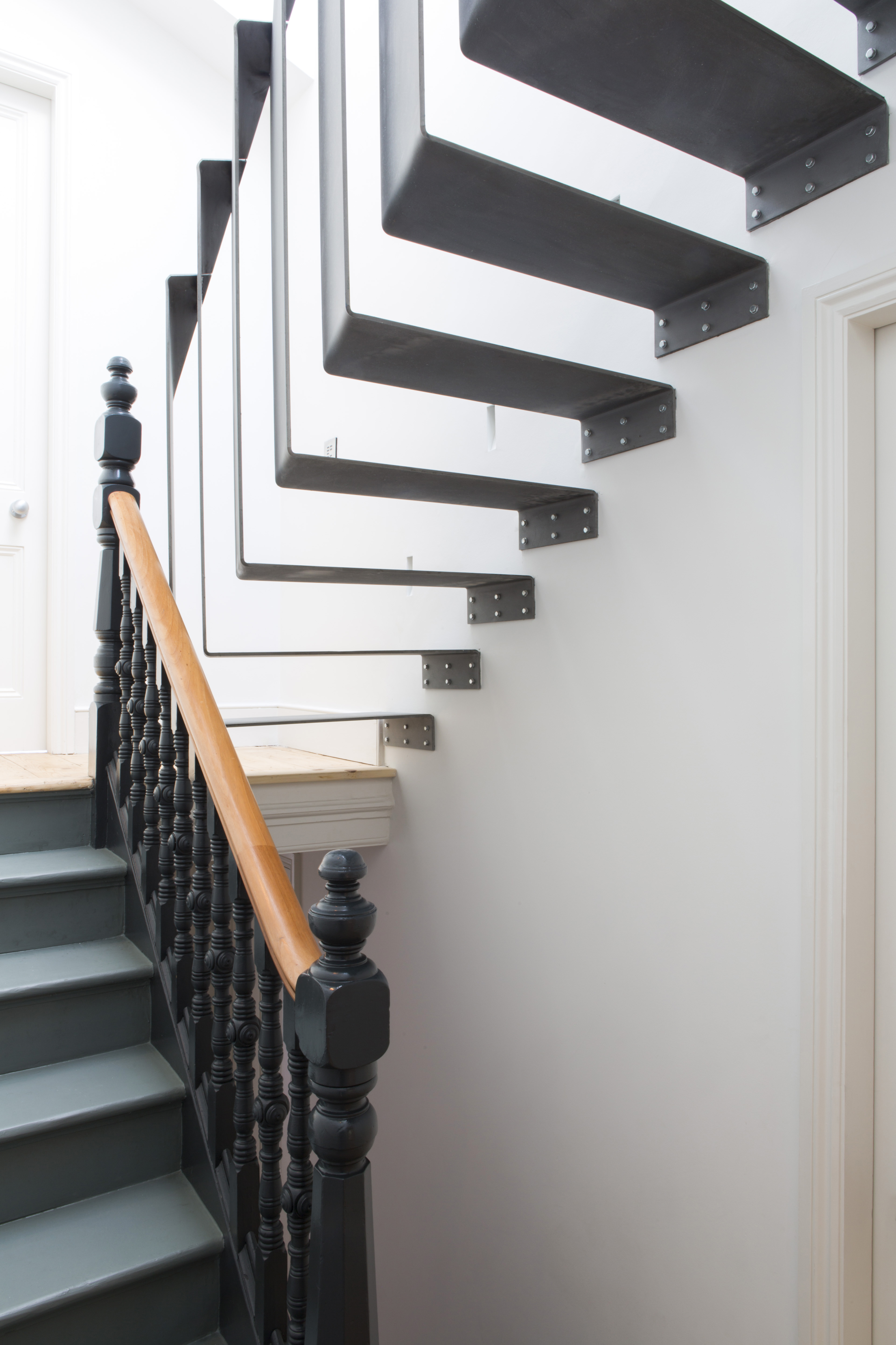 The exciting interplay between the period nature of the house and new contemporary living spaces is reinforced through the detailing of individual elements, including a new cantilevered metal staircase in contrast with the Victorian wooden banisters below.