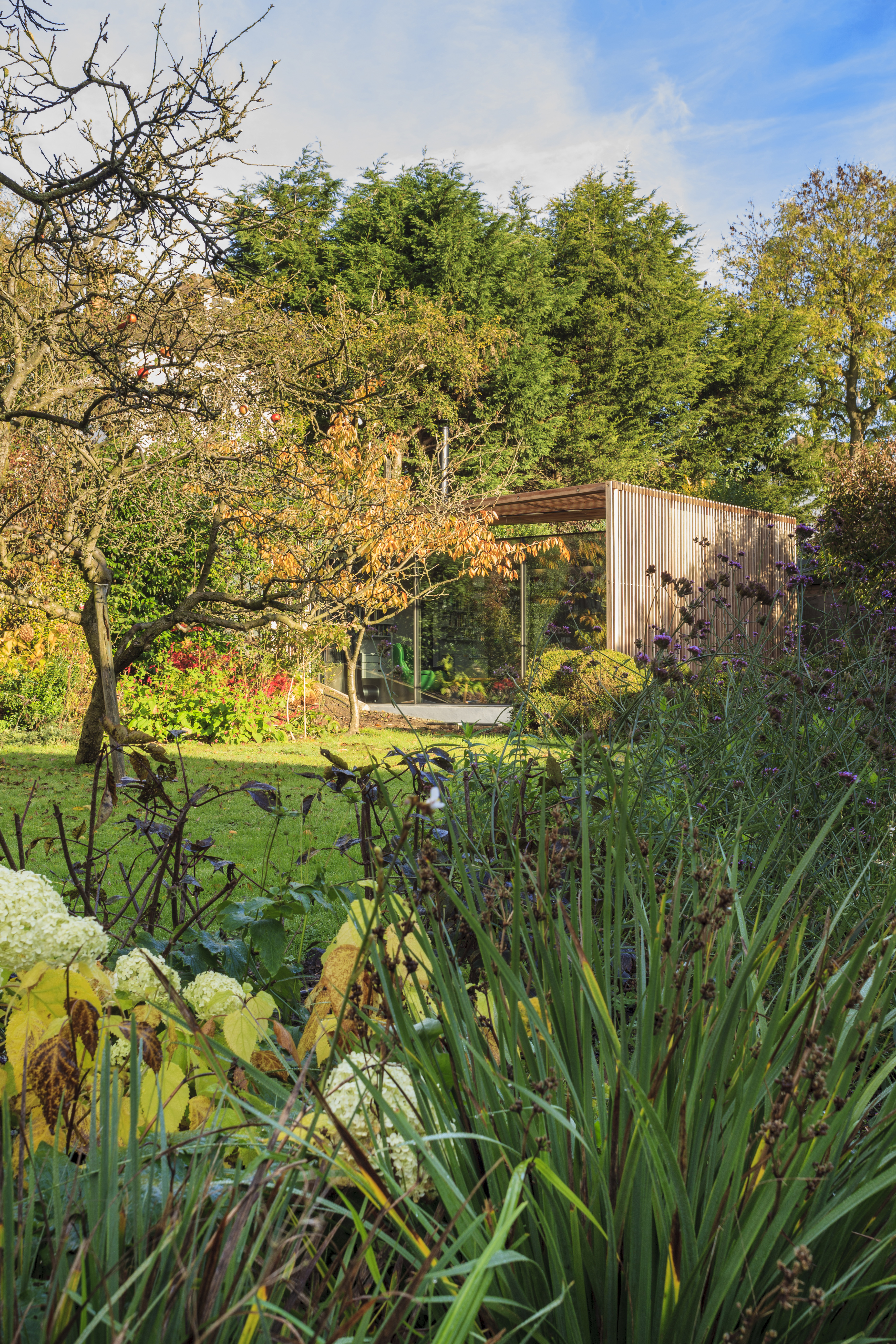 The client is a screenwriter who wanted a ‘flexible’ space that would be expressly made for thinking, writing, laying-out scenarios and watching movies on the biggest screen possible. And he wanted it in the grounds of his Walter Segal home, specifically where the compost heap stood steaming in the autumn light.
