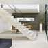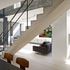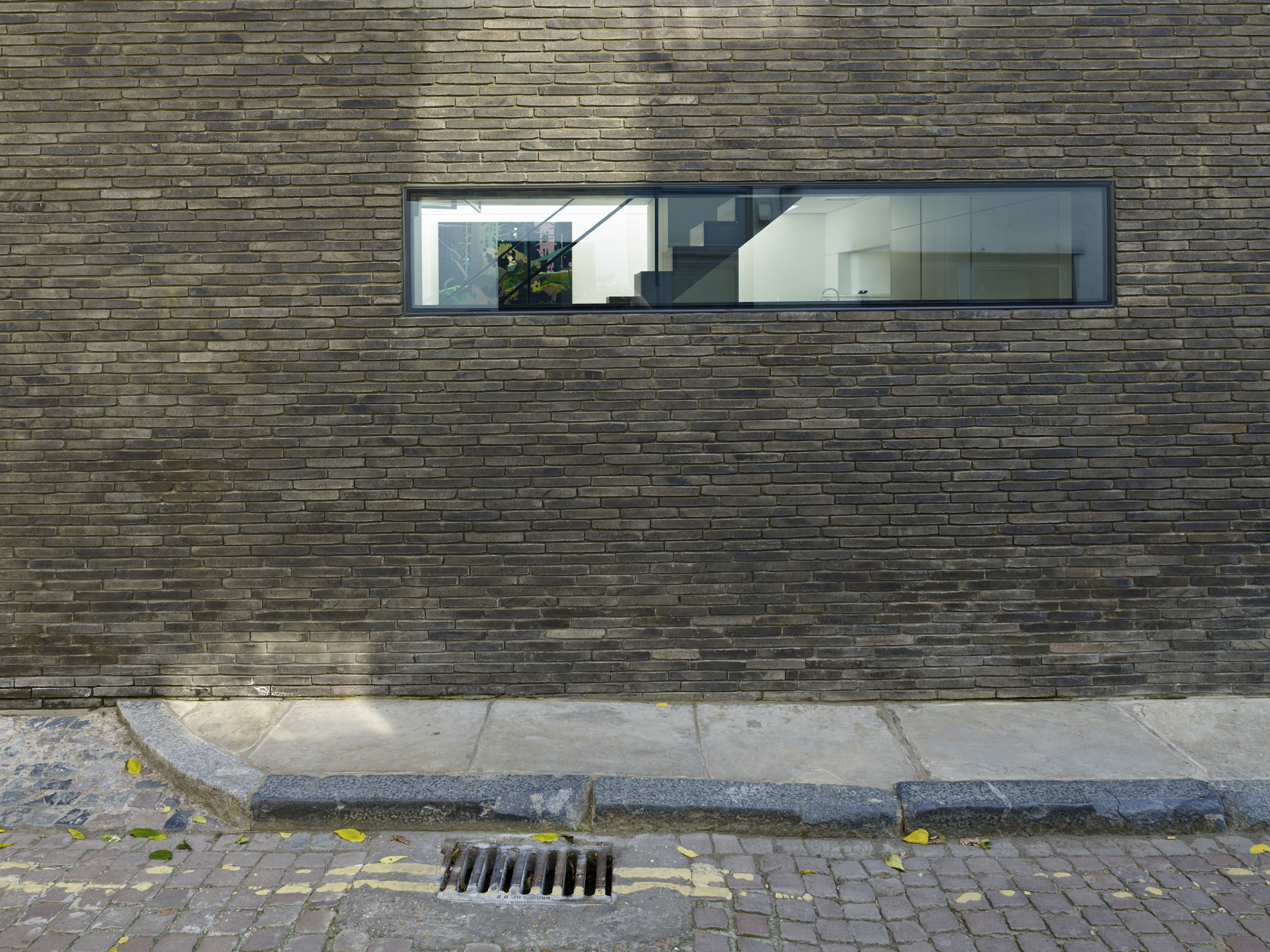 The stairs divided the ground floor paces and sit in a slot between the first floor rooms, one of which is a suspended box that stands behind the double-height glazed screen of the courtyard.