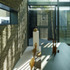 The ground floor contains an open plan gallery arranged around an internal courtyard, that is cut into the brick box.
